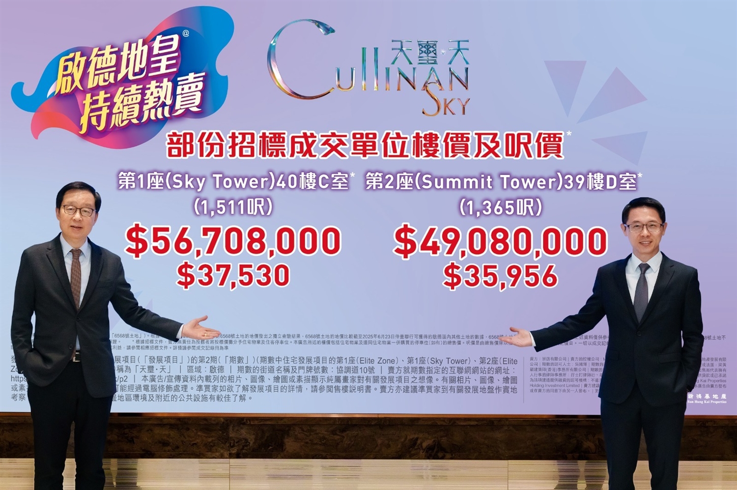 25 11 月 未分類 天璽.天2期單日標售5伙 套現逾2.1億 Posted by supsdmin 2025-11-25 0 已屆現樓、新地(0017) 啟德天璽.天2期,透過招標售出形式今日連沽5伙,套現逾2.1億元。單位均為4房間隔,其中成交價及呎價最高成交,為第1座 (Sky Tower) 40樓C室,實用面積1511... Continue reading